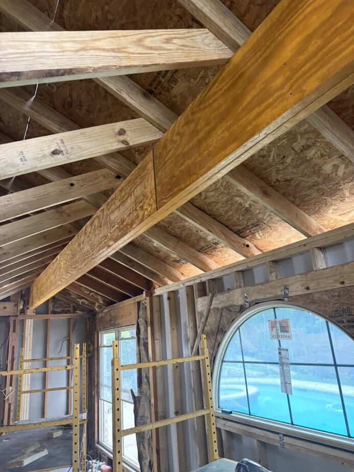 The engineer called for another beam, a 16 inch beam for the vaulted ceiling, spanning the 27 feet of the new kitchen. Carlos double-checked with the engineer on the size. The engineer wanted a 16 in beam so that over time it wouldn’t sag and cause problems with the roof joists. Always get good engineering on your project!